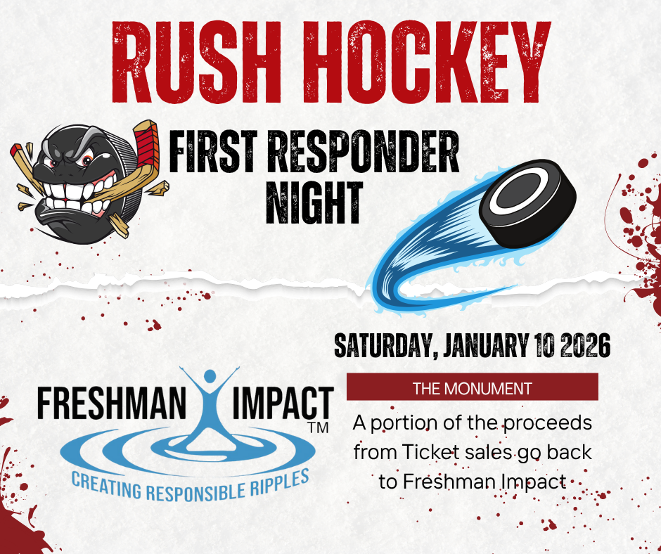 Rapid City Rush and Freshman Impact have partnered for First Responder Night. A portion of the proceeds from ticket sales goes back to Freshman Impact as a fundraiser. https://www.gofevo.com/event/Freshmanimpact2